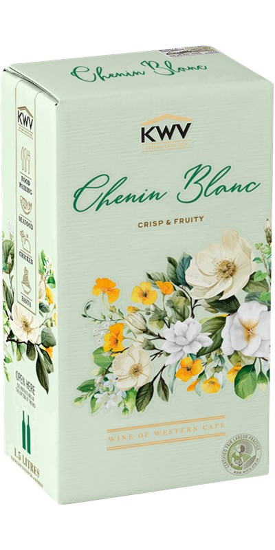 KWV Chenin Blanc on ihastuttavan virkistävä ja hapokas valkoviini kätevässä 1,5 litran hanapakkauksessa.